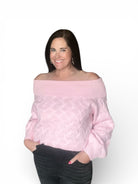 Greer Ribbed Fold Over Off The Shoulder Textured Sweater
